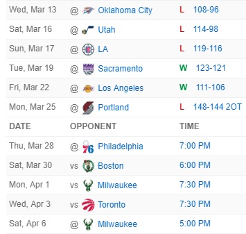It doesn’t get any easier for them at home, where they’ll face Boston, Milwaukee, and Toronto. The good thing is that the Sixers look unlikely to meet the Nets in the playoffs, simply by virtue of the difficulty of their late-season schedule.