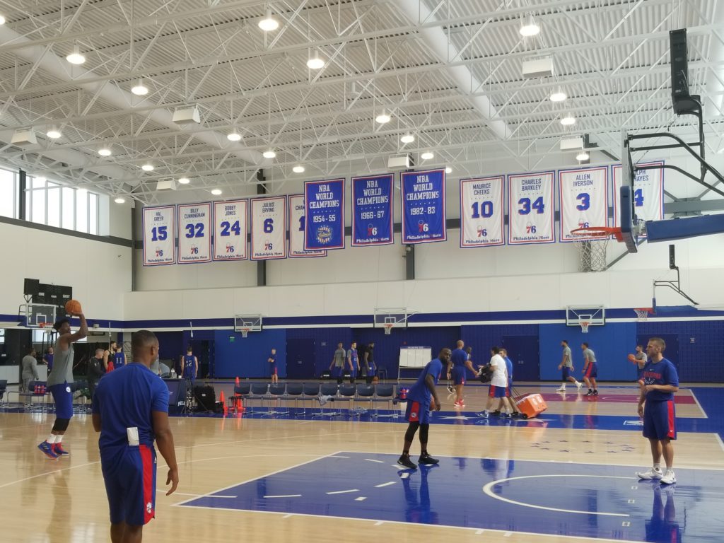 Joel Embiid participated in half-court 5v5 segments, while Jahlil Okafor took part in all activities. It was the first time both players practiced in those capacities during training camp.