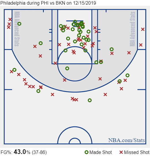 The Sixers are actually a top-eight three-point shooting team this season, hitting at 36.5% on 29.2 attempts per game, which is way down at 27th overall. You could actually make an argument that they should shoot more from three, based on that discrepancy, but then you’d be getting away from the paint-pounding and post-up game that has seen them get out to a 20-8 start this season.