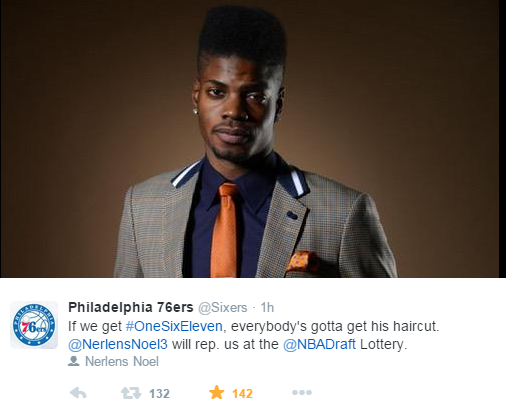 After saying Doctor J couldn’t make it and having people on Twitter suggest everyone from A.I. to Joel Embiid to Ric Flair (my choice), the Sixers have decided to send Nerlens Noel as their representative at the draft lottery. And along with what it says in the Tweet above, if the Sixers get one, six, and eleven, it should be against the law to ever get rid of Nerlens.