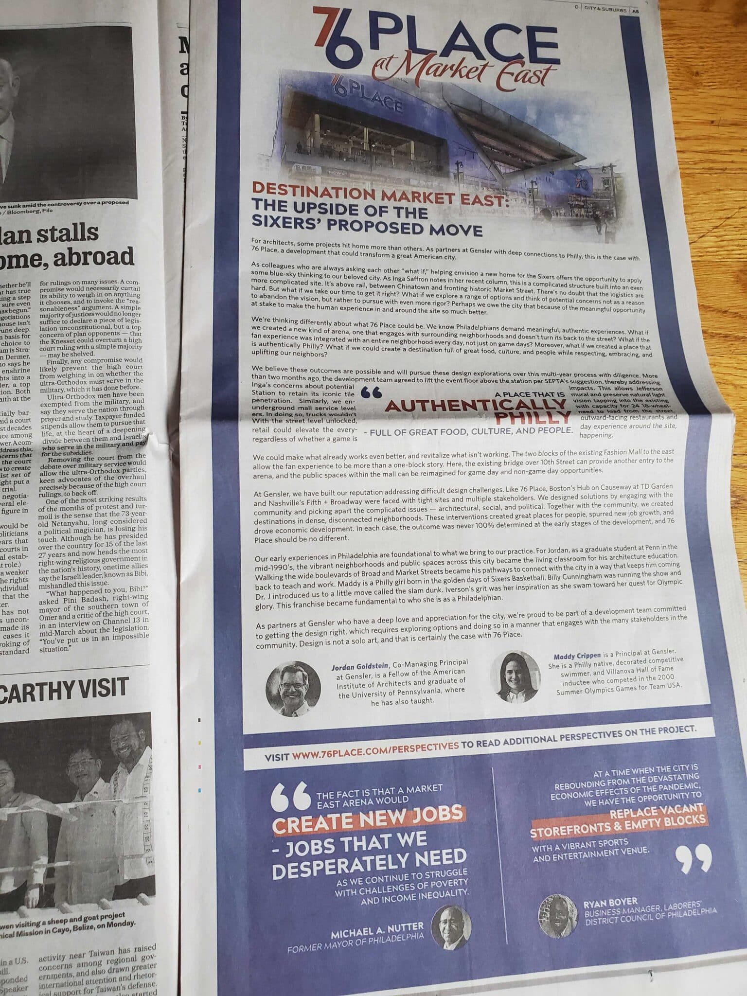 Sixers Run a Full-Page Inquirer Ad to Promote Arena Project