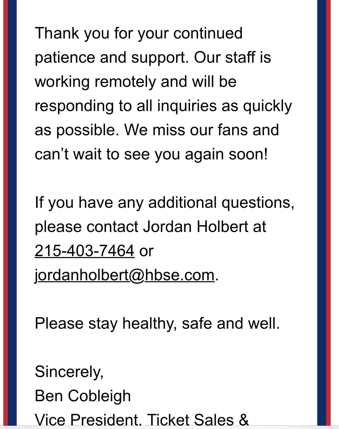 As such, Crossing Broad has learned that the team will be contacting season ticket holders today to inform them of the following options regarding those unplayed games: