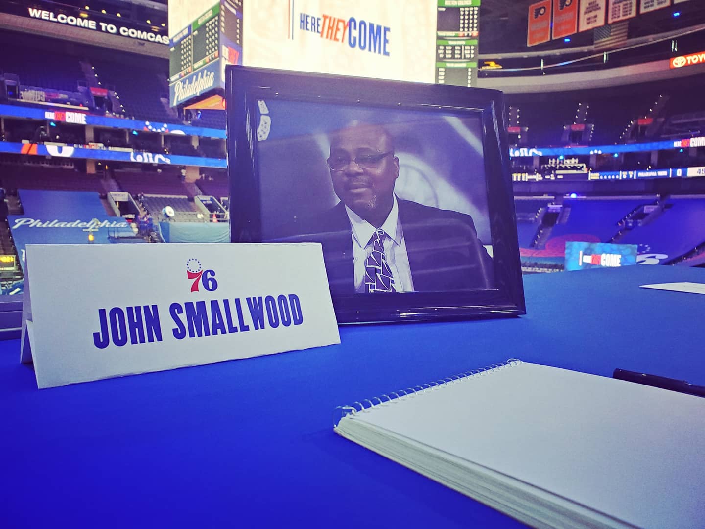 22. Finally, a nice tribute to the late John Smallwood at a symbolically empty table, and also a shoutout on the jumbotron before the game: