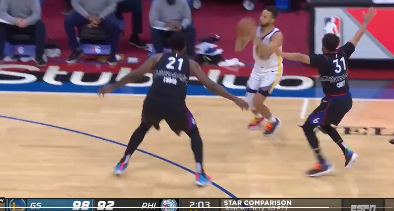 Doc is right that Embiid isn’t much of a match for Curry in space. That’s fact #1 we can all agree on. There was a sequence in the middle portion of the game where Steph just went right around him.