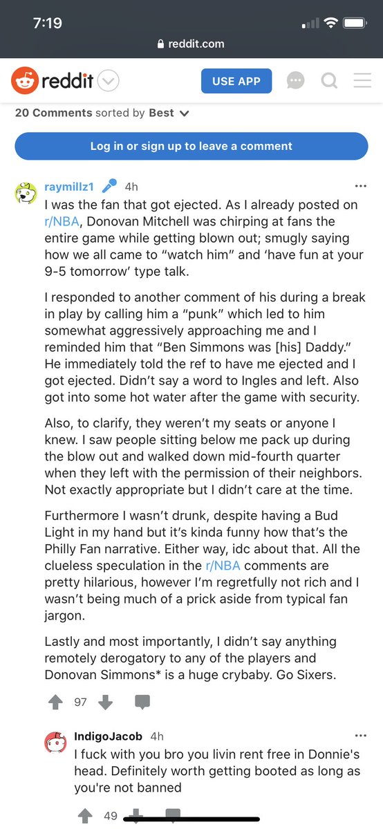 Pretty good, if true. I’ll venture over to R/NBA and see what that thread says. It feels to me like the Ben Simmons/Donovan Mitchell beef died down last year, but the fans are apparently still feeling it. They’re a little saucy.