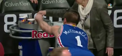 T.J. McConnell Tried Really Hard to Pour Water on Dario Saric, Failed