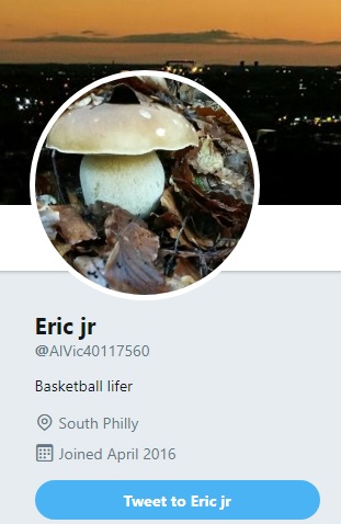 Four of the accounts are private, but one, @AlVic40117560, is still active. The account is attributed to a guy named “Eric jr” and features a profile picture of a mushroom, for whatever reason. The last Tweet was posted in July of 2017, so there’s nothing recent. A majority of the 296 tweets were posted halfway through the 2016-17 season.