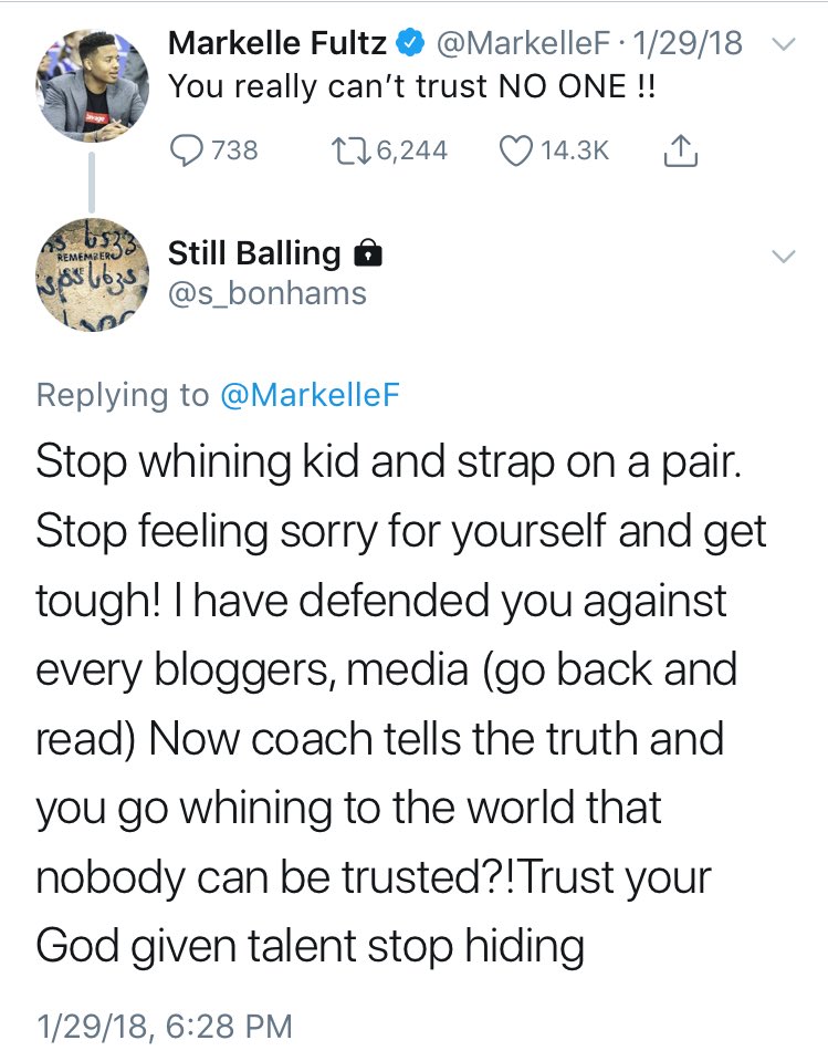 And there was another tweet where he responded directly to Markelle Fultz: