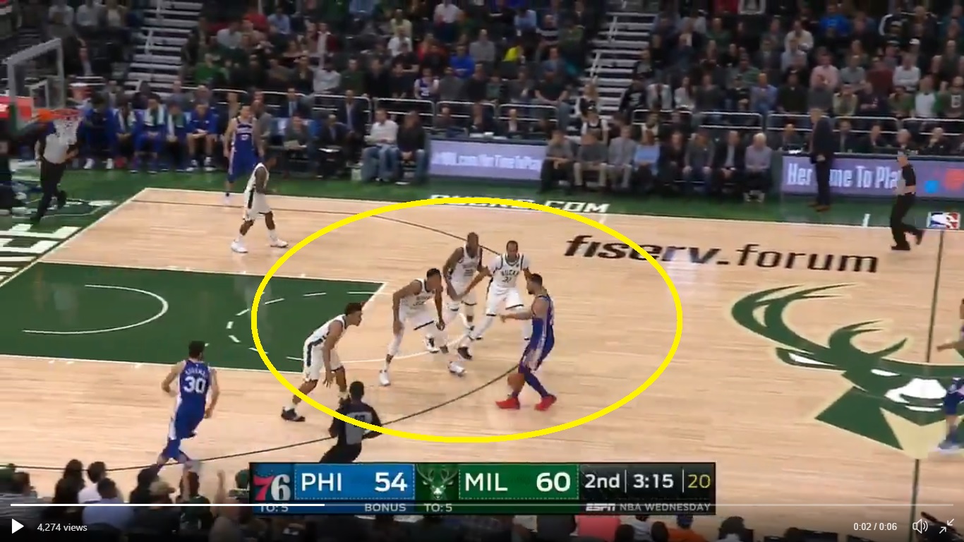 On this play here, there are literally four Bucks standing in front of him to seal off the slot: