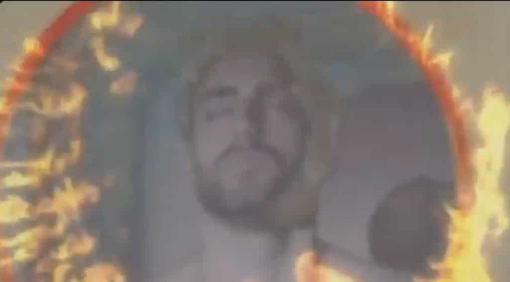 Alright I’m back. It truly is a work of art and the specific choices made during the production just kill me. The checkered shorts! The dingy Soviet Bloc-esque weight facility he’s working out in! The gratuitous beefcake shots of his ass! HIS HEAD SUPERIMPOSED IN A FLAMING RIM. It’s a thing of beauty.