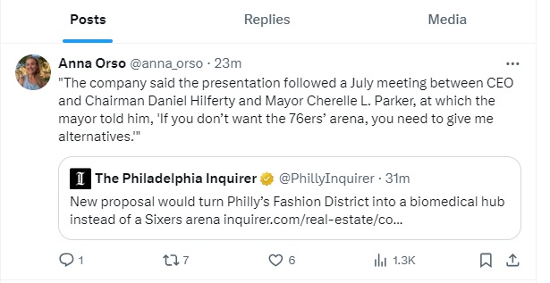 The Inquirer published a Jeff Gammage story Tuesday night titled “New proposal would turn Philly’s Fashion District into a biomedical hub instead of a Sixers arena.”