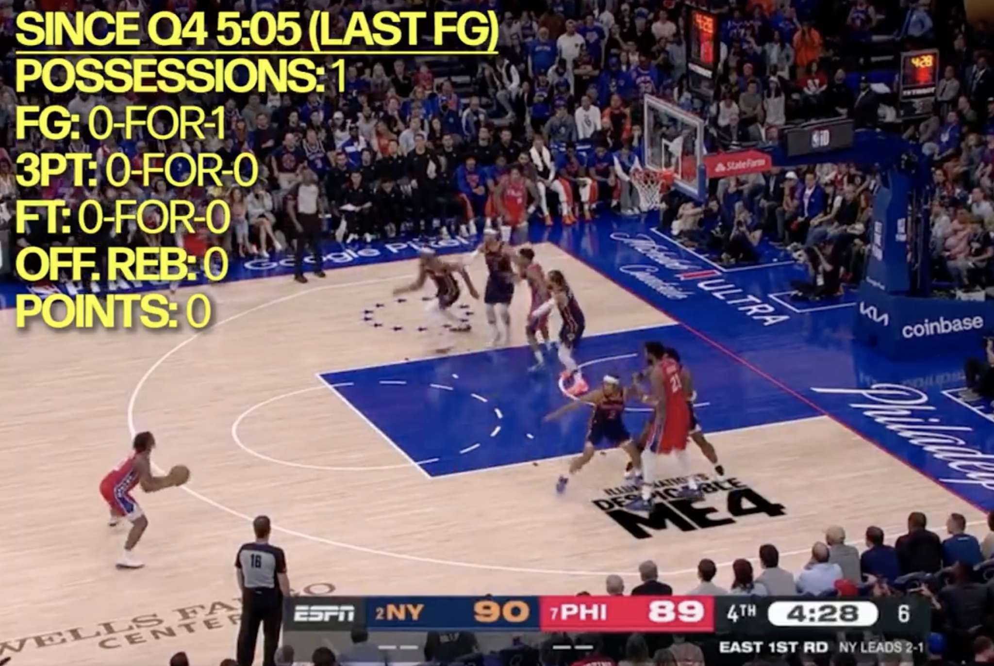 Possession 4: Embiid doubled (sensing a pattern), Maxey stepback jumper bricked