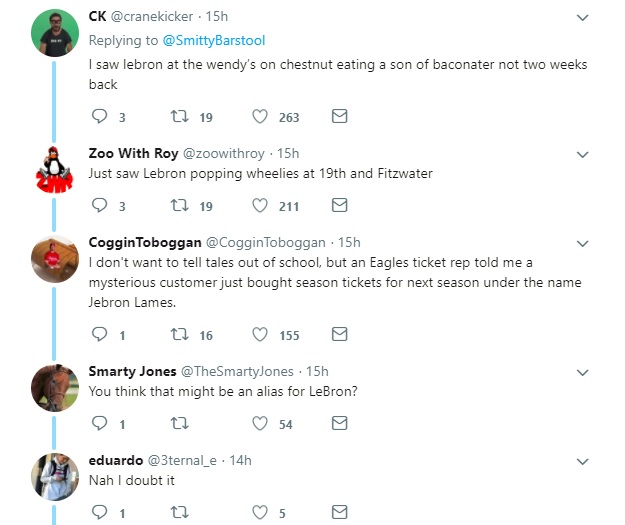 Obviously LeBron is close with Ben Simmons, which is the genesis of every LeBron/Philly link. He played with the Sixers in NBA2k the other week and commented on some Instagram post or something. There’s a bit of a connection there, but nothing concrete to go off of, unless these count: