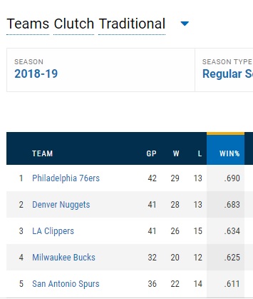 For the Sixers, that record equates to a win percentage of .690, which is #1 in the NBA.