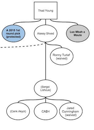 So yeah, Thad Young has become Luc Mbah a Moute, a first round pick, a second round pick, a foreigner we’ll probably never see, and a pile of cash. #togetherwebuild