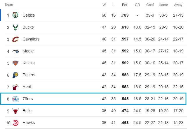 Let’s take a look at the NBA standings after the Sixers muscled their way to a come-from-behind win against the Miami Heat on Thursday night: