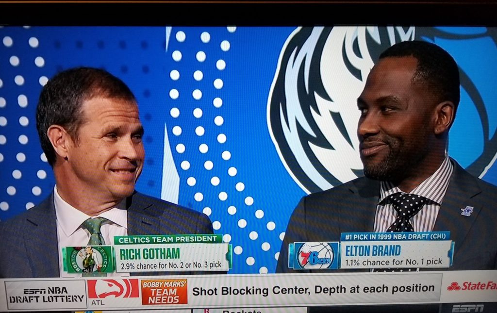 Anyway, the Sixers are picking tenth. The 1.1% chance of getting the #1 overall pick did not materialize. The Celtics now get the better of the Kings/Sixers first round pick in 2019, top-one protected.
