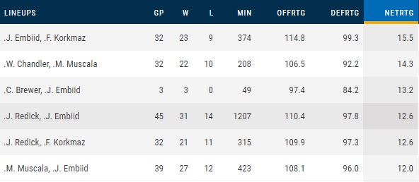 For context, here are some of the Sixers’ best pairings: