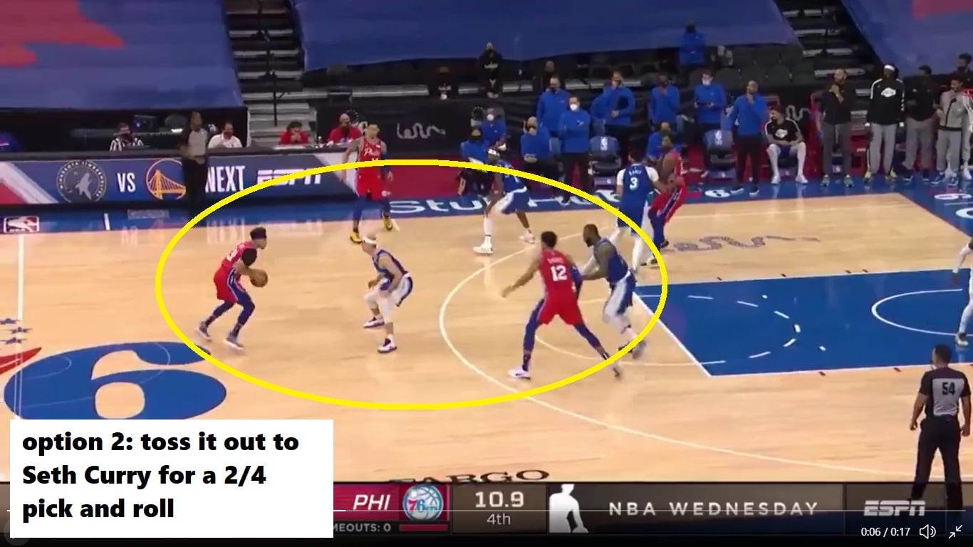 Rivers explained in the above quote how they ended up with the ideal mismatch, and it starts with a pin down action between Joel Embiid and Seth Curry, which you can see here: