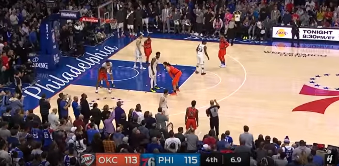 Keep in mind, in that situation there were 5.1 seconds left on the clock and the Sixers didn’t have any timeouts remaining, so if OKC hits a shot to tie or take the lead, you can’t sub to put Redick back on the floor for the ensuing offensive possession.