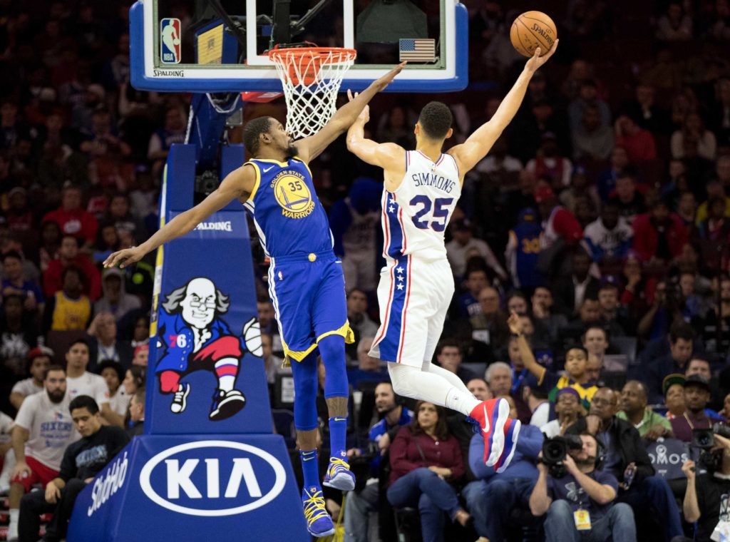 Andre Iguodala didn’t play that night, but the Warriors threw their typical starting five at Brett Brown’s young team, resulting in these not entirely balanced starting lineups: