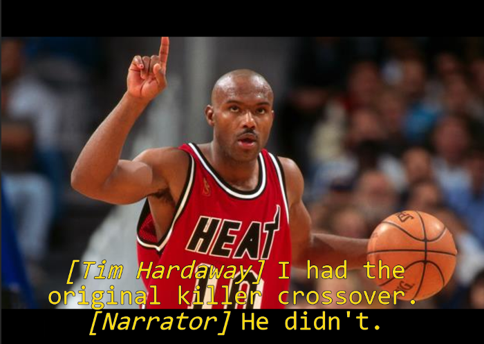 There’s a difference between Hardaway’s crossover and Iverson’s. Tim’s was all about change of direction with speed. Like this: