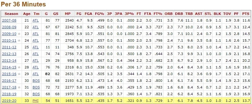 Across the board, his per-36 numbers are significantly down. Some of that, of course, is the poor fit in Brett Brown’s system. A significant chunk, however, is him just missing shots and not playing to the level he’s capable of: