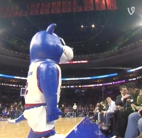 Um, so What Is This Sixers Blowup Franklin Spraying on Fans in the First Row?