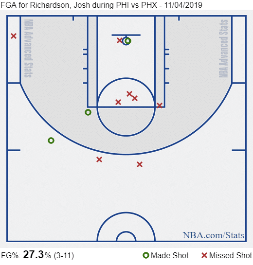 With Joel Embiid wrapping up his suspension, Al Horford, Tobias Harris, and surprise starter Furkan Korkmaz all held up their end of the bargain at Talking Stick Resort Arena, which is a terrible name for a sports complex. Philly just didn’t get anything offensively from the combination of Ben Simmons and Josh Richardson, who paired up to shoot 5-19 from the field while committing eight turnovers. Add in 60% team free throw shooting and some 4th quarter Devin Booker shot making, put all of it in a blender, and you get a sour tasting, five-point loss smoothie.