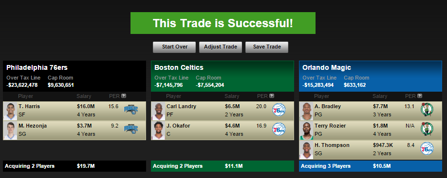 As you can see, not a lot of names there the Sixers could pursue and afford, without screwing with “the process.” Harris, Schröder, and Payne are the type of guys you can land without giving up much, but they don’t fit the “established” player mold Jerry Colangelo seems to be eyeing. The Sixers seem poised once again to play team three in multi-squad trades to land a pick in exchange for a salary dump or just helping out, if that’s something they still want to do.