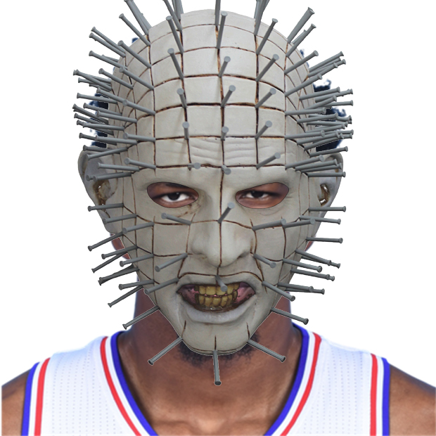 Or, I think you can get a little more interesting, and maybe Embiid comes out of the tunnel with the Victor Oladipo Black Panther mask, yells “Wakanda Forever,” and then posterizes some poor fool: