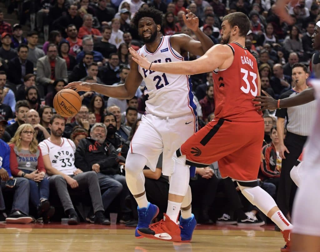 Joel Embiid scored zero points in a really rough outing last night. He was 0-11 from the field and 0-3 from the foul line, managing only two shots in the paint as he tried to deal with Marc Gasol and constant double teams throughout the game.