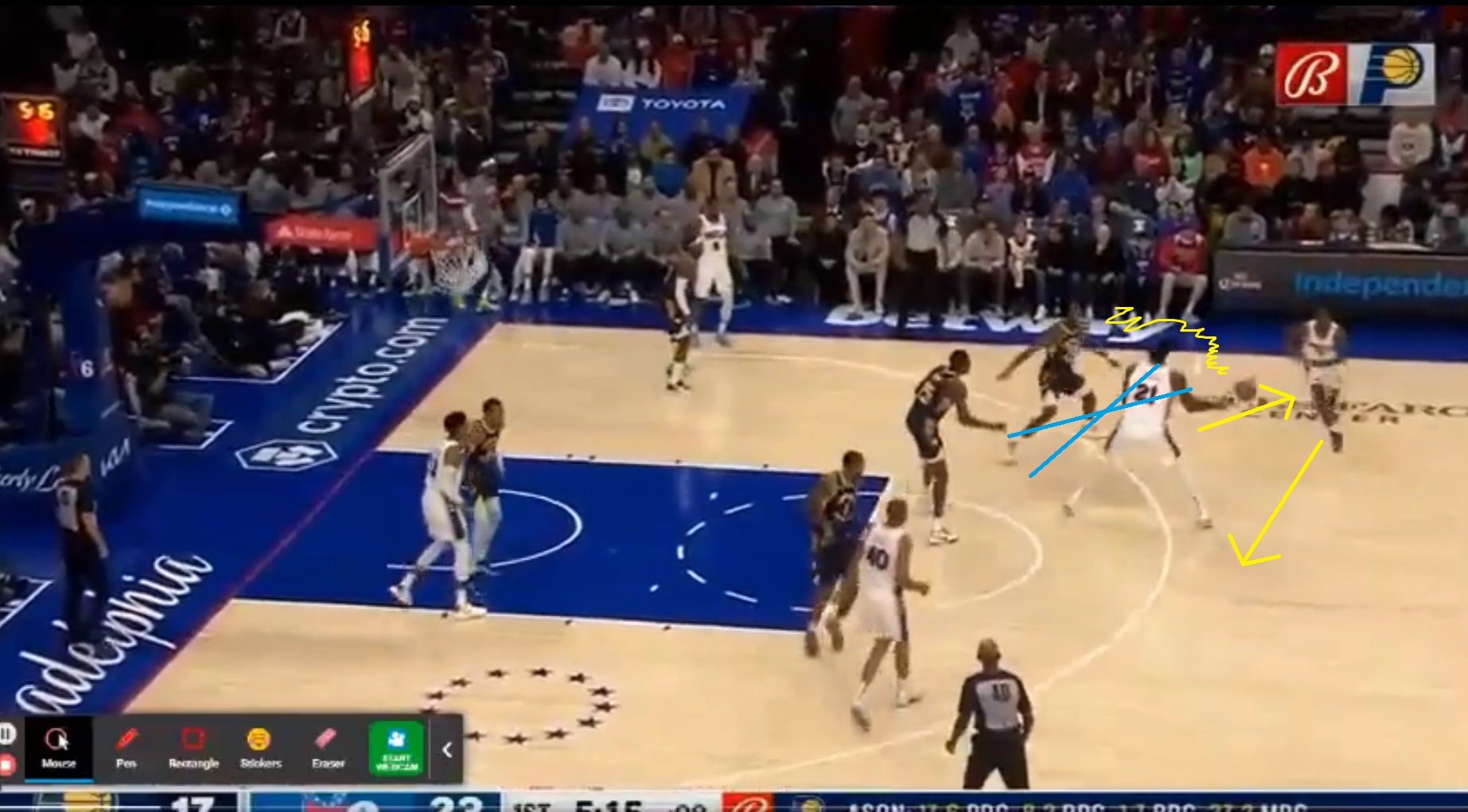 Dan Olinger at Liberty Ballers put together a highlight reel showing a portion of Tyrese Maxey’s 50-piece from Sunday night. I narrated through some of the stuff you see in the video and got out the telestrator for a moment: