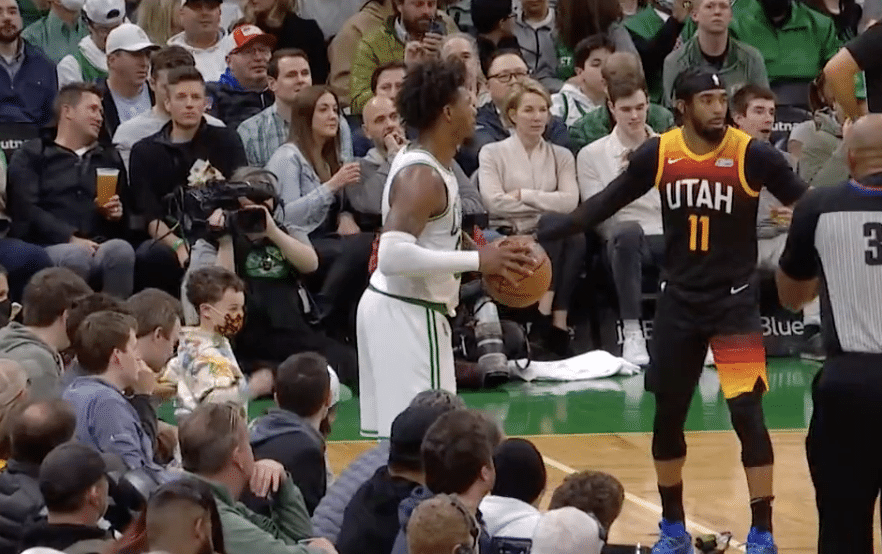 Last night during the Celtics/Jazz game, a fan sitting courtside assaulted Marcus Smart as he was inbounding the ball: