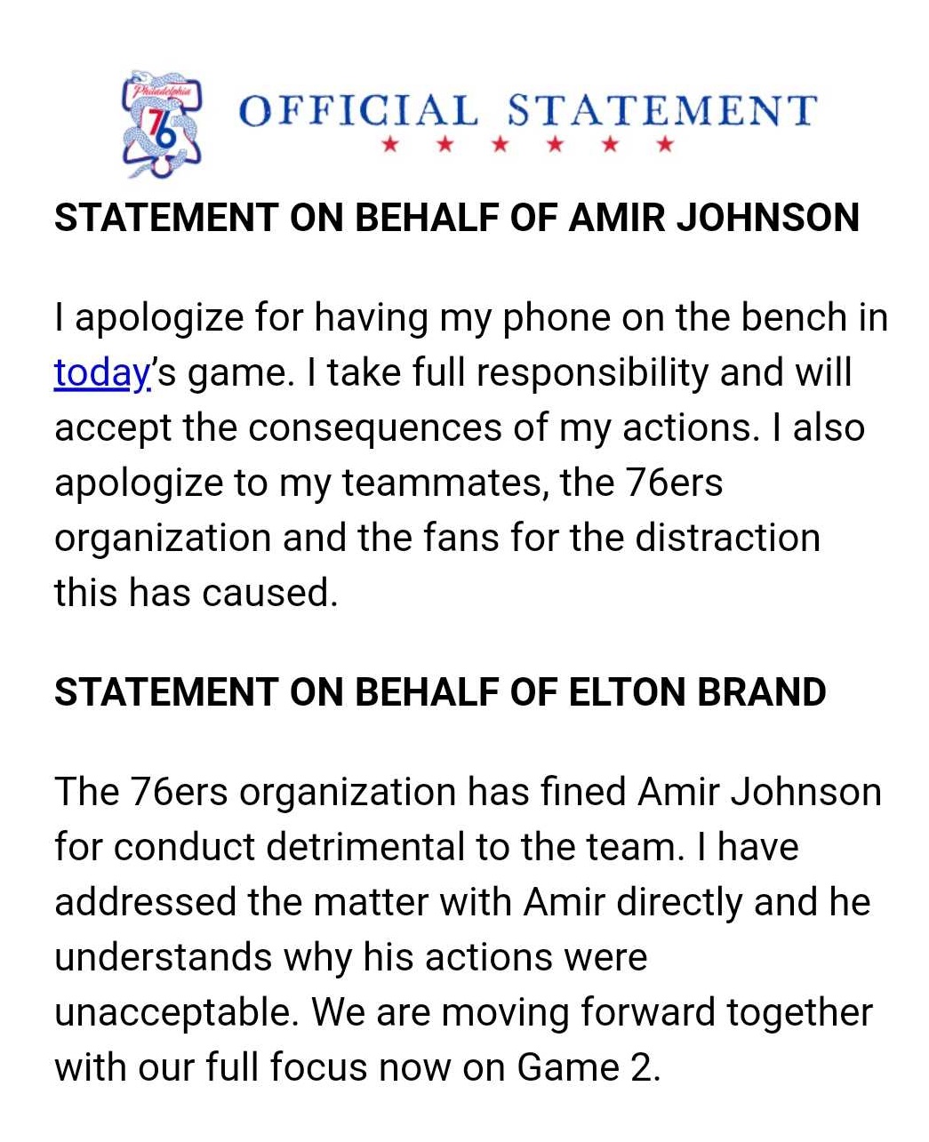 The Sixers sent out a pair of statements a short time ago: