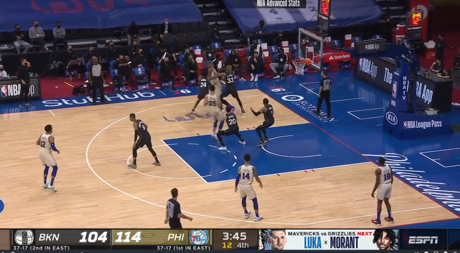 We haven’t seen much of it this season, and Rivers has done a good job of mitigating the problem, but there were some instances late in the fourth where Nic Claxton was just sagging off Simmons while the Sixers were attempting to play entry passes for Joel Embiid.