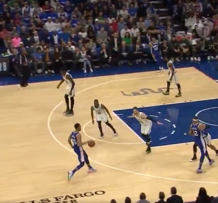 The next batch substitution saw Mike Scott enter with Embiid and Richardson, resulting in this: