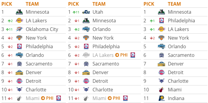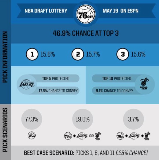 Of the 1,000 possible combinations, the Sixers have 156. But really they just need one of those picked. And then for one (or more) of the teams from 11-14 to get one so they can get the Heat’s pick and for a team to jump into the top three from behind the Lakers so they can get their pick, too. Simple.