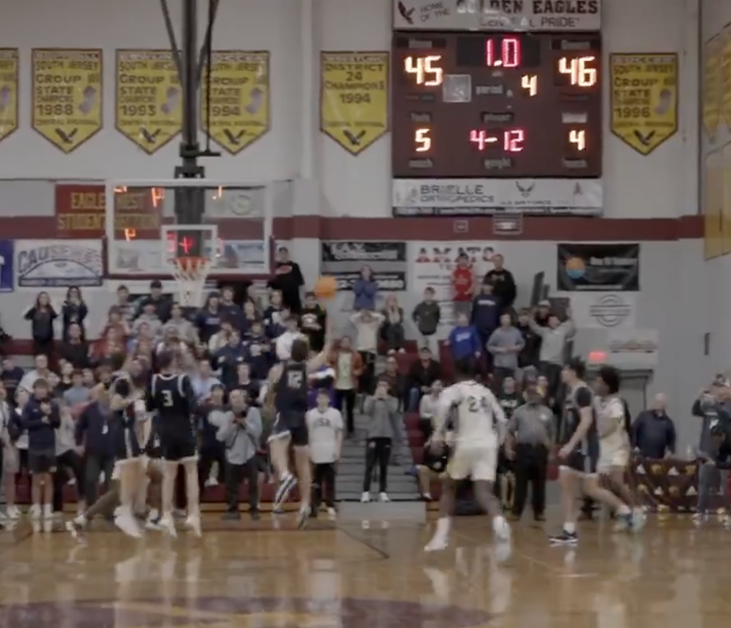 The Camden/Manasquan game, which would send the winner to the NJ state group championship, ended in controversy after a Manasquan player’s buzzer beater was originally counted but ended up being waved off. You can see clear as day the Manasquan player got it off with around one second left on the clock.