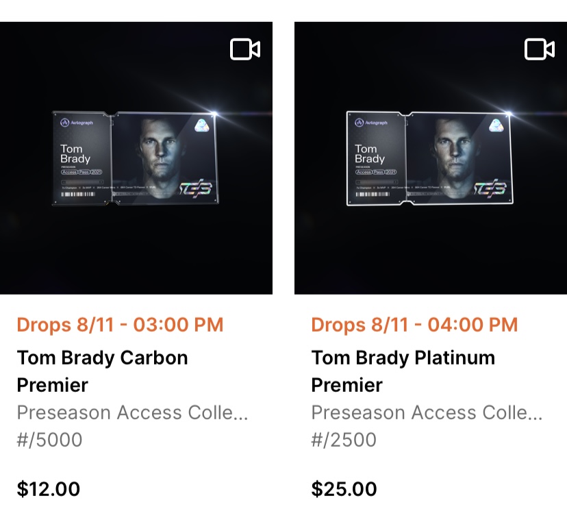 The first athlete featured is Tom Brady, with a pair of scheduled drops on Aug. 11 and Aug. 13.