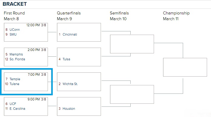 They’re not participating in March Madness unless they win the conference tournament, which begins tomorrow night in Orlando against Tulane. Temple split the season series with the Green Wave, so I like their chances to win the 7/10 game on a neutral floor.