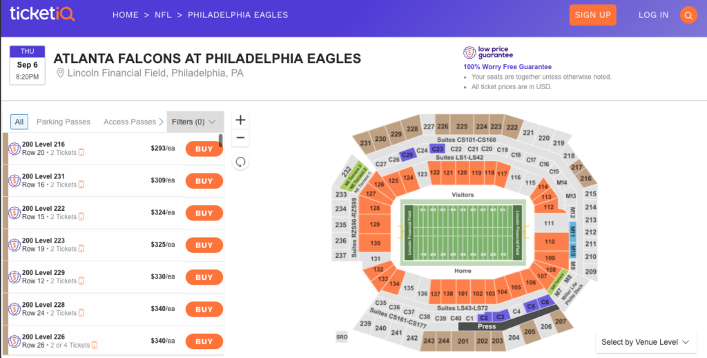 It’s hard to believe it, but the Eagles’ home opener is only a week away. Why not let TicketiQ get you into this season’s home opener? Thanks to our friends at TicketiQ, the best secondary ticket vendor on the market, and their “Low Price Guarantee”, you can rest assured that you’re getting the best deal. For the first time all summer, tickets have dropped below $300 each.
