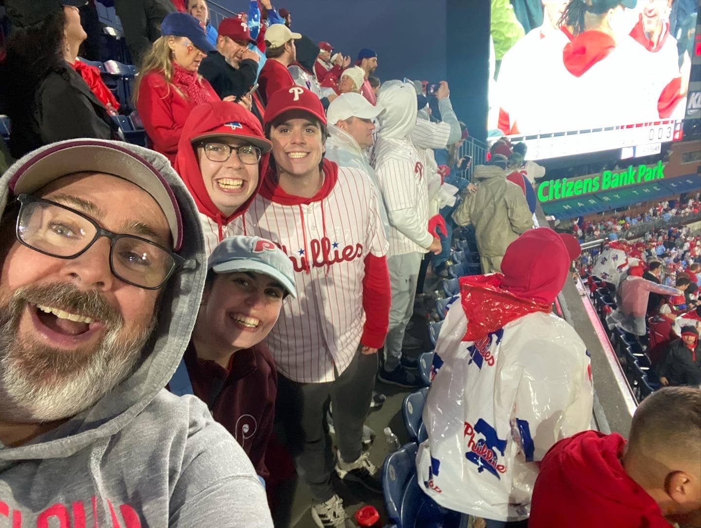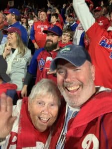 “We’ve been a Phillies family since my kids were little. We would watch games every night, or listen on on the radio. The last time they were in the World Series in 2009 my kids were young. So, to be there Sunday, with my three adult children, it made the moment even greater. When Bryce Harper hit the homer – I got bear hugs from each of them.