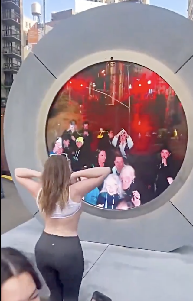 View from other end of The Philadelphia Portal from Lithuania “after it was damaged by a rock” organizers say, not gunshots, as it appeared to many. On @FOX29philly at 10pm, report on “It’s headed out of LOVE Park to one of 3 Philadelphia locations & back up & running soon.” pic.twitter.com/3Elmd4iOTi