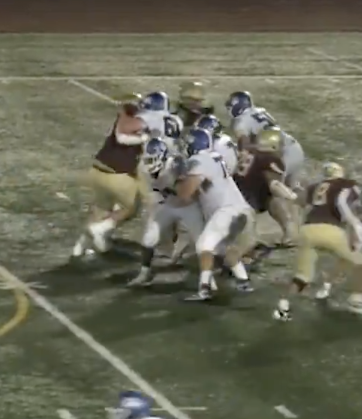 This is Israel Ayala, a 2025 nose tackle that Mifflin uses to clog the gap. He’s built like a mack truck if it was rolling on 22 inch rims. He’s quick off the line of scrimmage and tiny enough that he can get under a lineman’s pad level to cause issues in the backfield.