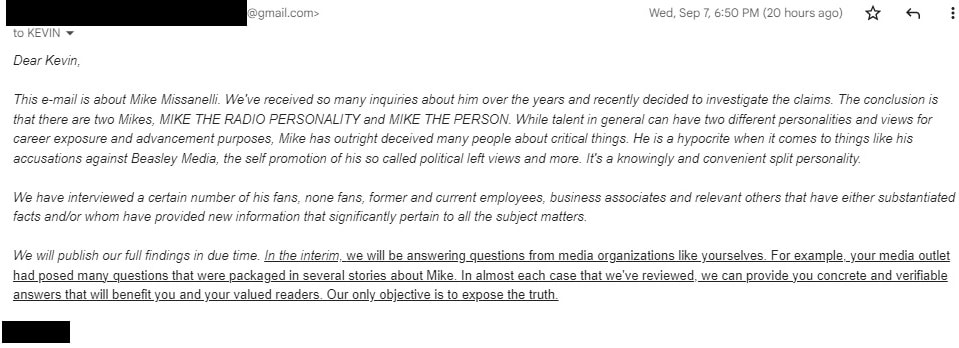The best part is the serious tone. They are talking about Mike as if we’re gathering information for the January 6th Commission. “We will publish our full findings in due time.” What is this, Benghazi? Mike is a radio host. I don’t think it’s that big of a deal. If I want to hear about split personalities I’ll watch that M Night movie with the dude who played Professor X in the X-Men movies. James McAvoy I think his name is.