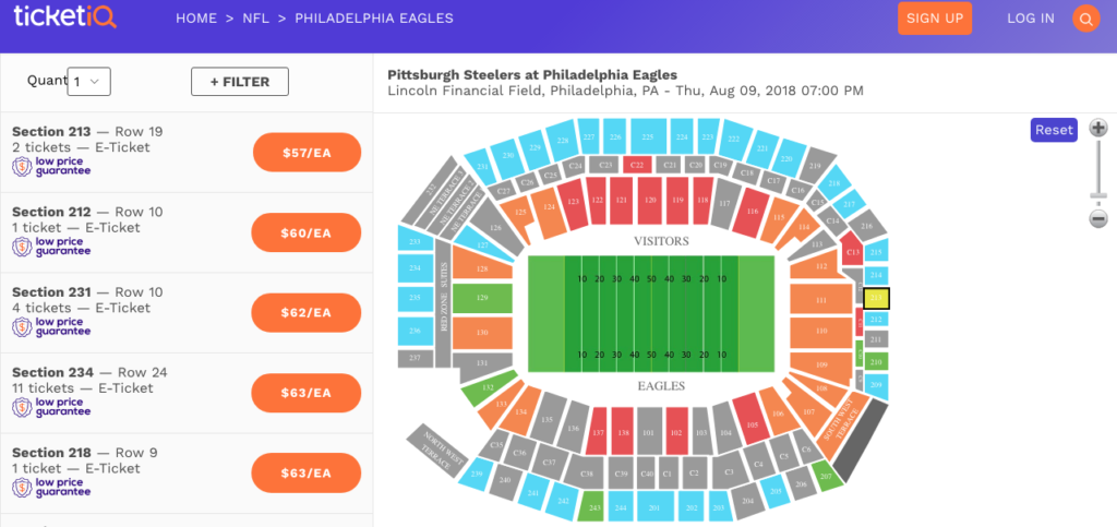The Super Bowl Champion Philadelphia Eagles are a few weeks away from their first preseason game of their title defense. Why not let Ticket IQ get you into every Eagles home game this season? That’s right, not only does Ticket IQ offer single-game tickets, they can get you into every Eagles home game for the 2018-19 season! We’ve been partnered for quite some time with TicketIQ, the best secondary ticket vendor on the market. With their “Low Price Guarantee”, they’re confident that they can offer you the best tickets at the lowest price.