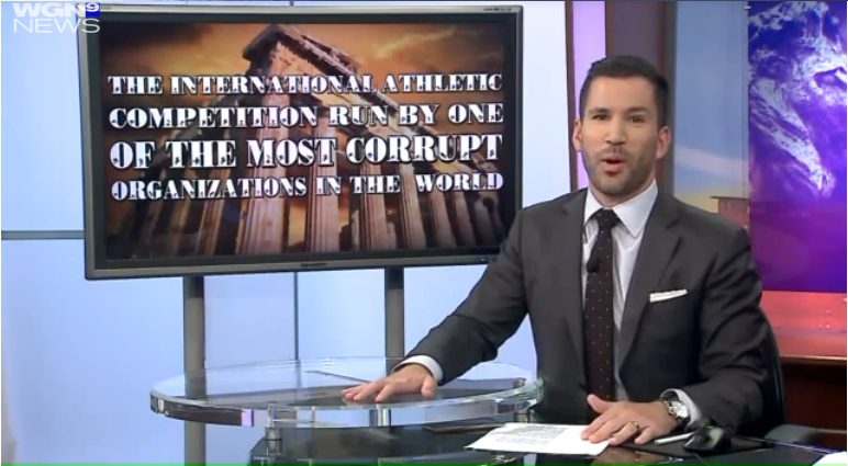 What is there to do when the Olympics only allow you two minutes of highlights in your entire six-hour newscast? Rally against the organization, show your own athletic highlights, and throw in some R. Kelly for good measure. Why? Because the IOC is corrupt and bad.