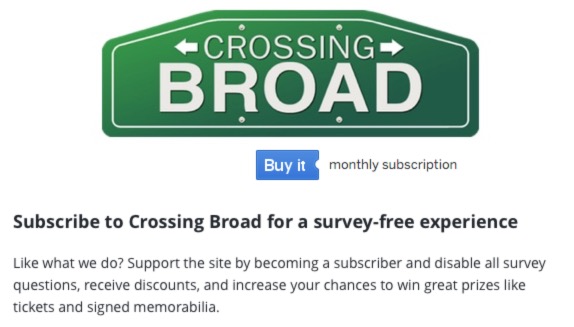 So, we’re offering up an alternative: A monthly or yearly premium subscriber option that will allow you to disable all surveys on the site.