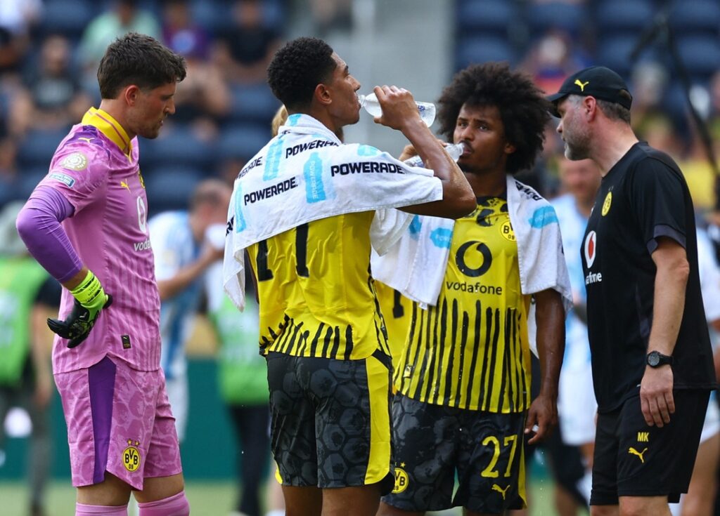 According to FIFPRO, three games during the Club World Cup — Paris Saint-Germain vs. Atletico Madrid in Pasadena, California; Chelsea against Esperance in Philadelphia; and Benfica vs. Bayern Munich in Charlotte, North Carolina — should have been suspended or even postponed because conditions went beyond their threshold of 28 degrees Celsius (82.4 degrees Fahrenheit) on the Wet Bulb Globe Temperature gauge (WBGT). (The gauge is a measure of heat stress in direct sunlight, accounting for air temperature, humidity, wind speed, sun angle, and cloud cover.)